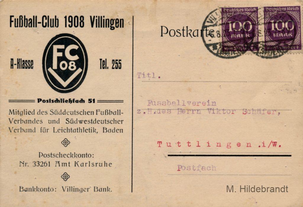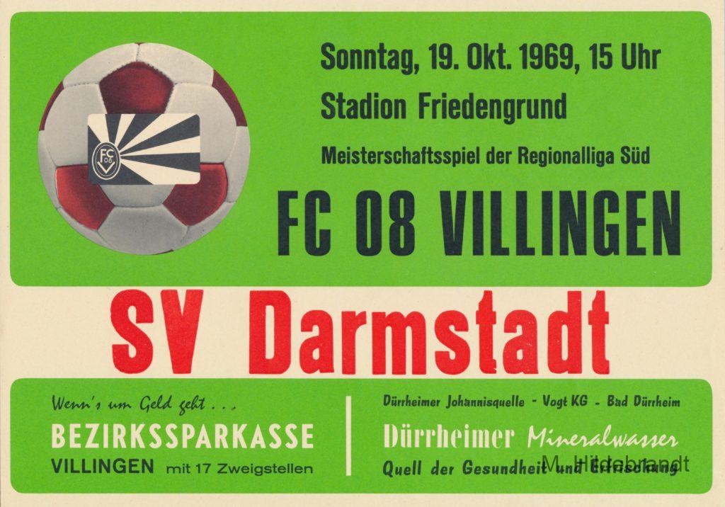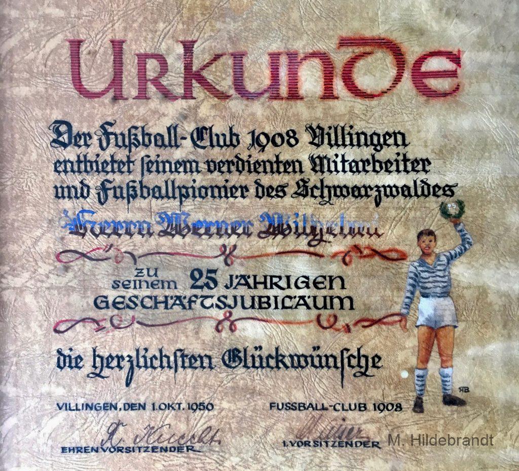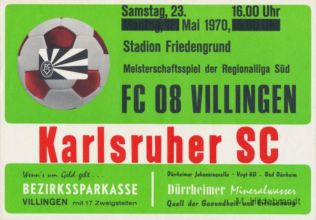 Villingen Fußball FC 08, Urkunde vom Sportfest 1913, National-Spieler Hermann Gramlich und mit Plakaten in der Regionalliga-Süd von September 1969 bis Mai 1970