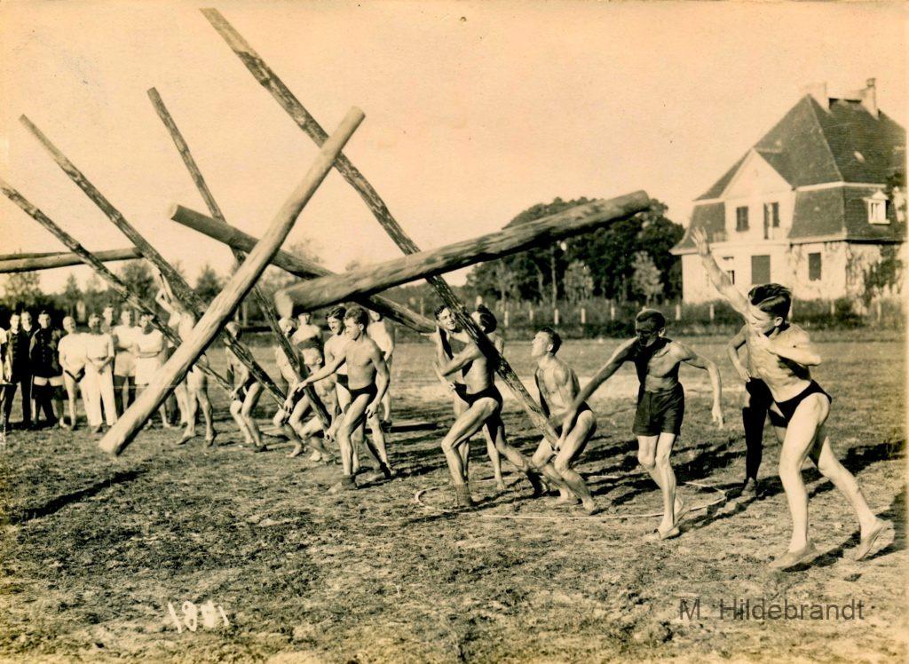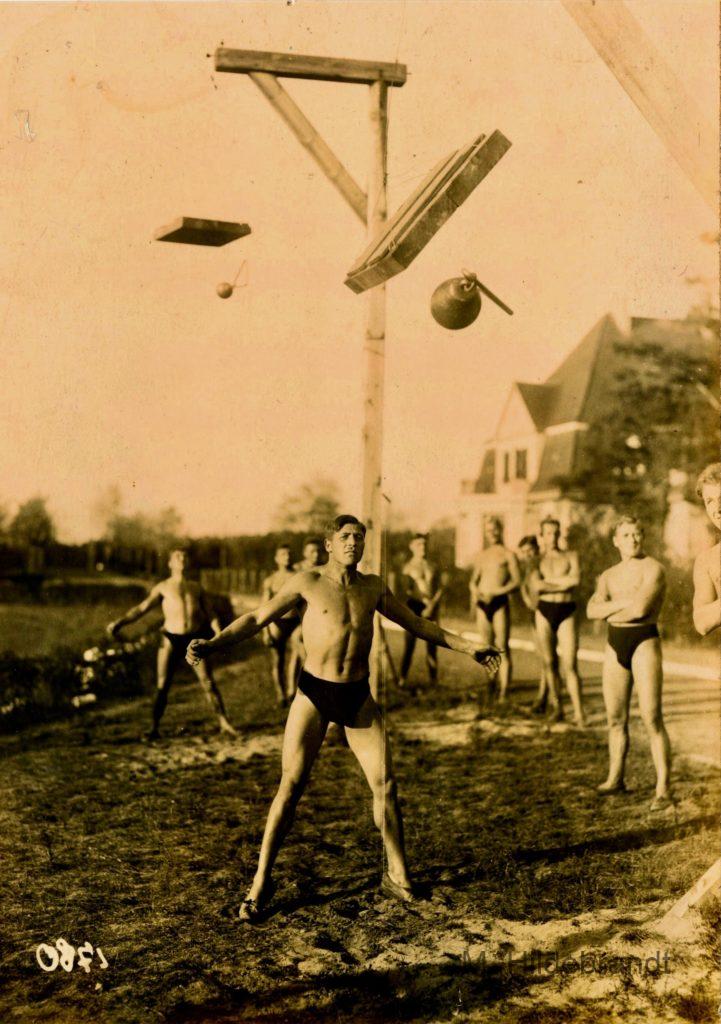 Sport ca. 1920 Balkenwerfen in Schottland ???
