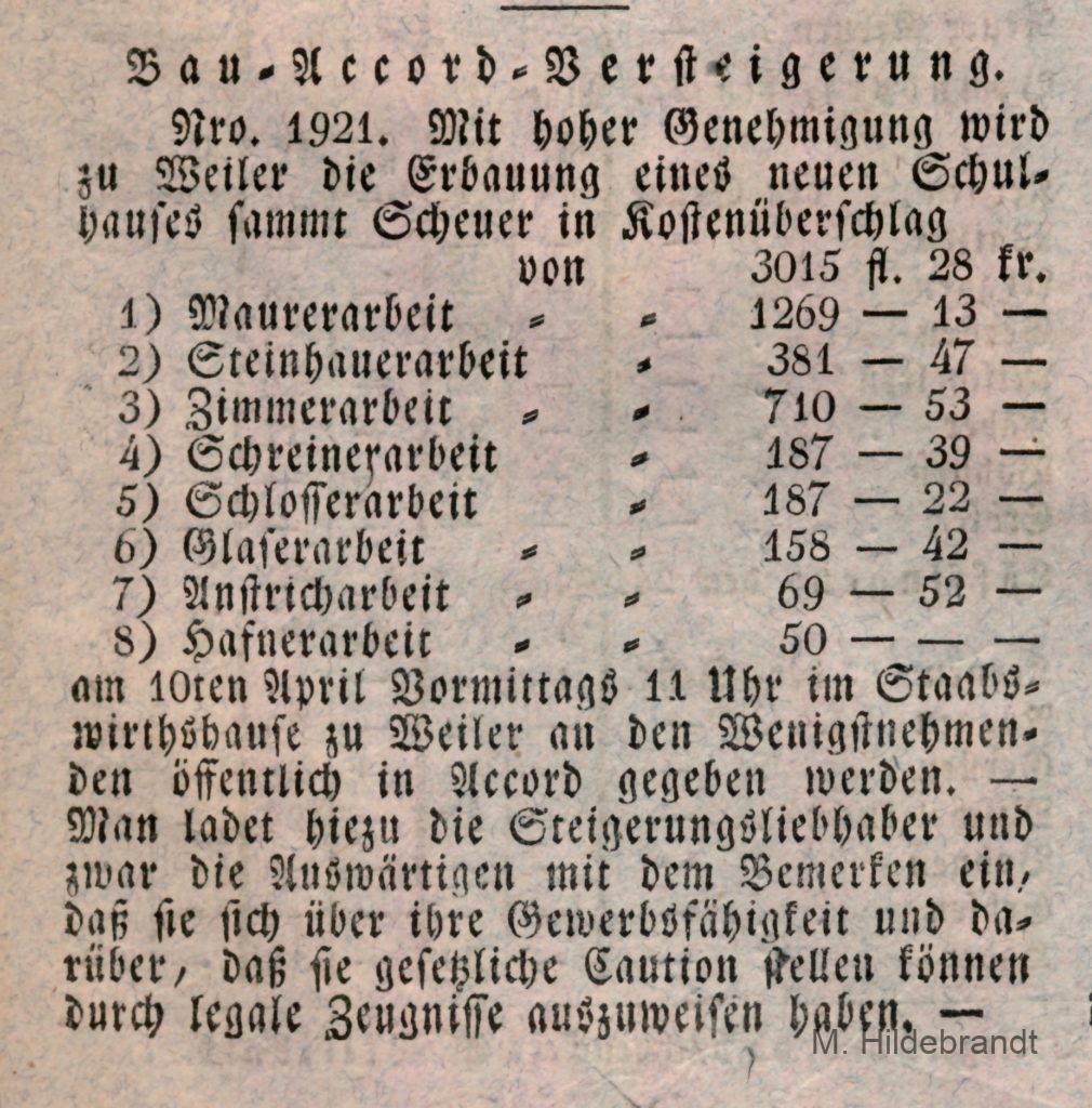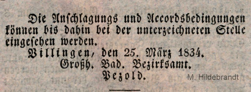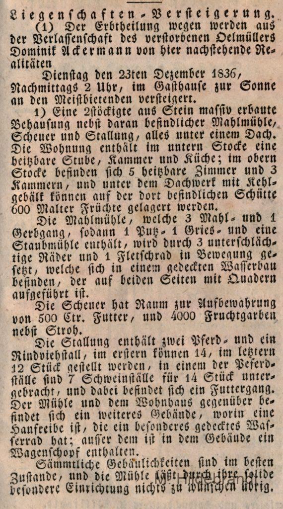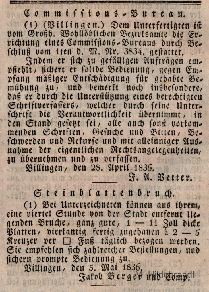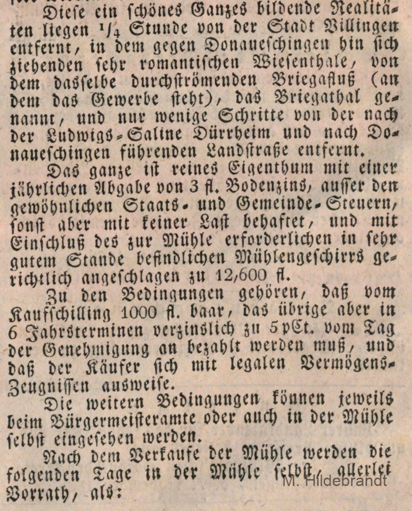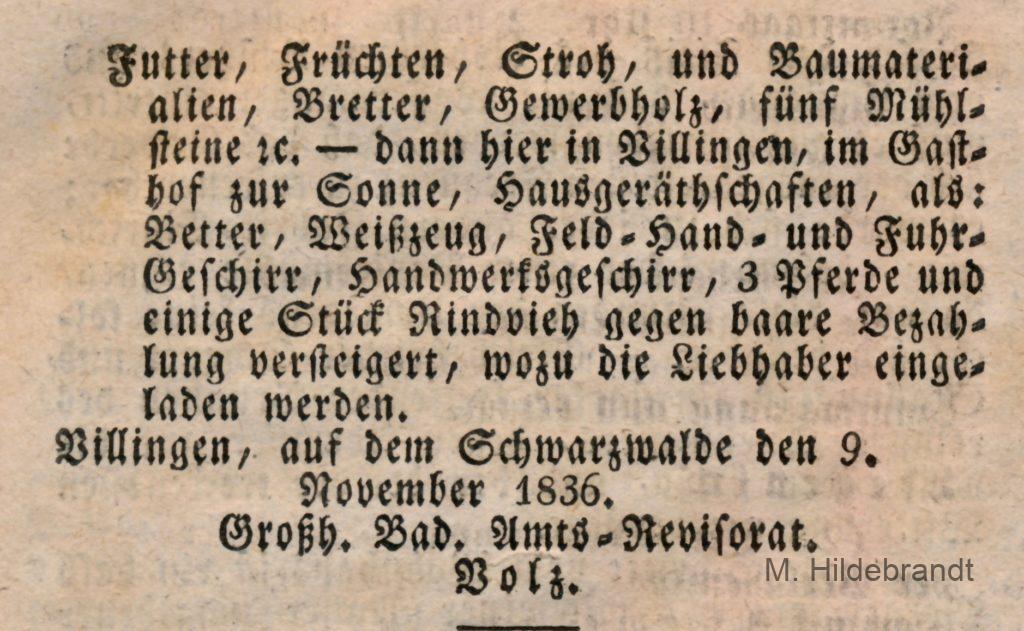 Villingen Ölmüller Dominik Ackermann Nachlaß-Versteigerung 1836, 1853 und Interessantes 1834/35/36