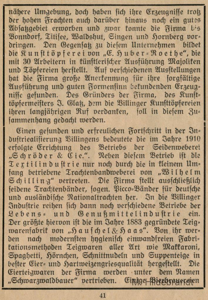 - Schifer bei Villingen: Hauschel und Haas, Teigwaren-Fabrik seit 1883 in der Waldstraße 33.