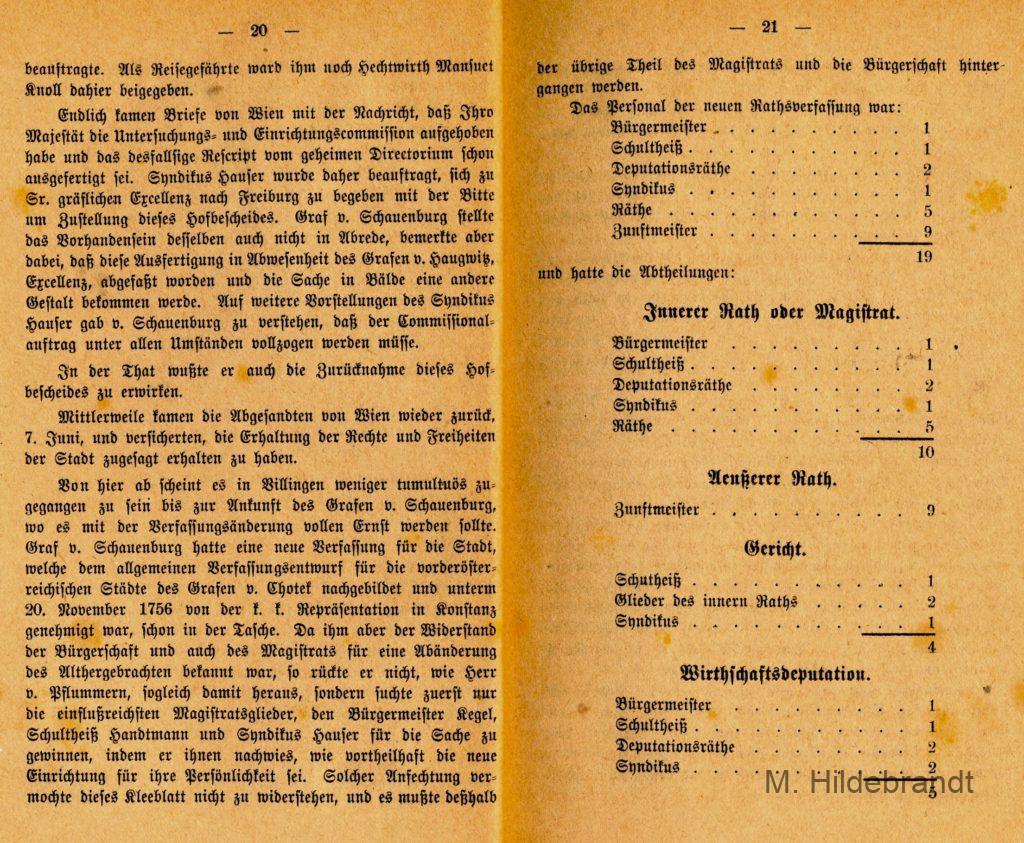 Villingen Ratsverfassung der Stadt 1873