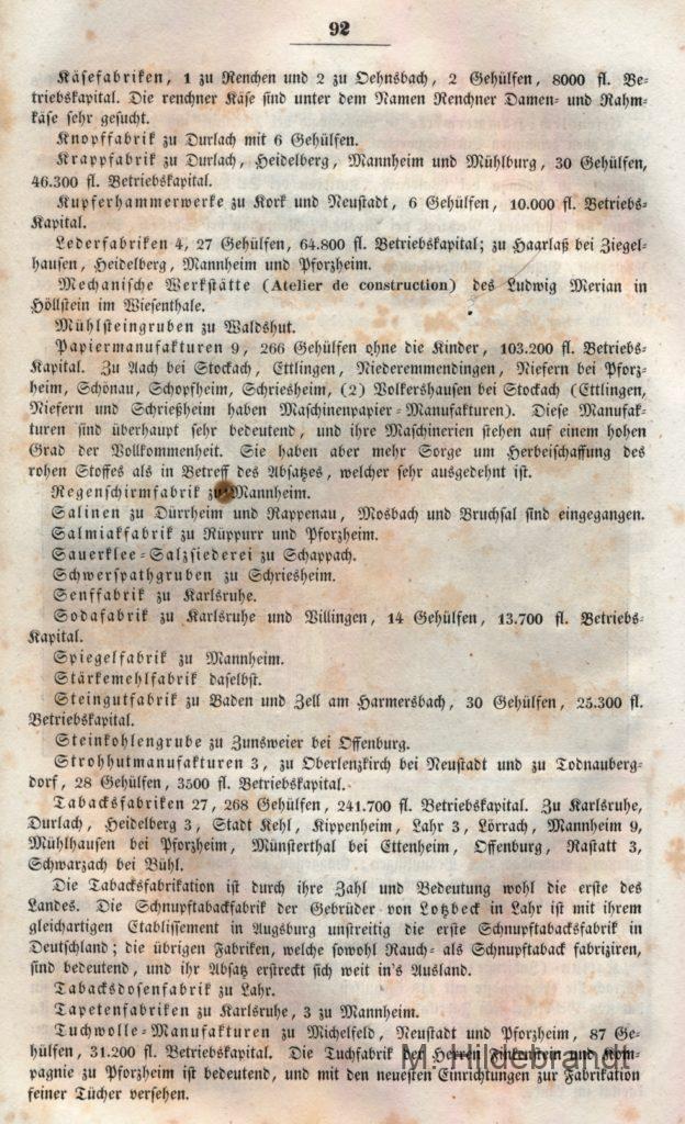 Großherzogthum Baden 1839 von A.J.W. Heunisch mit interessanten Orten und Handwerk im Schwarzwald