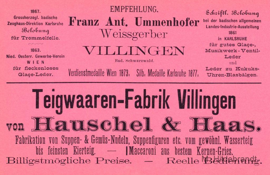 - Schifer bei Villingen: Hauschel und Haas, Teigwaren-Fabrik seit 1883 in der Waldstraße 33.