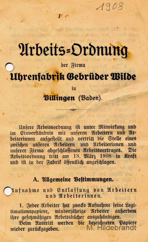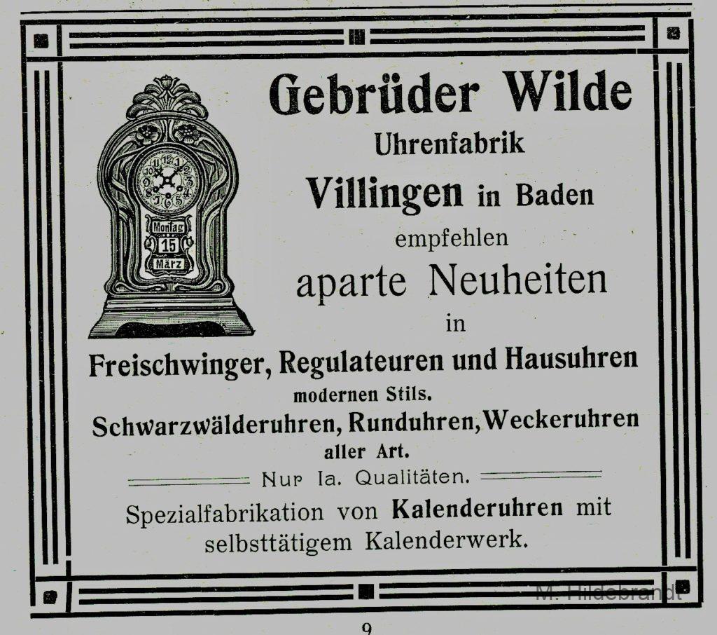 Eine Antwort auf “Villingen Uhren-Fabrik Gebrüder Wilde in der Brigach-Straße, gegründet 1904 mit der Arbeits-Ordnung von 1908. Der Kalender-Regulator ist heute bei den Sammlern noch sehr beliebt.”