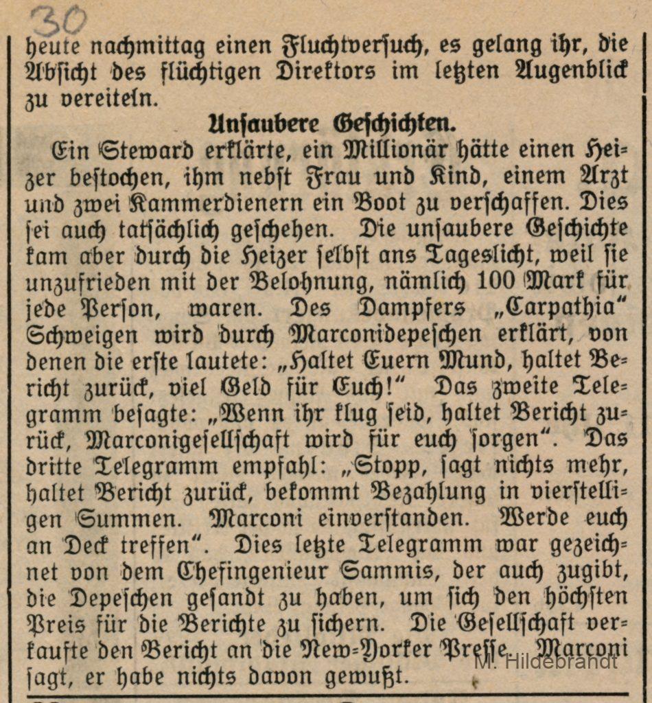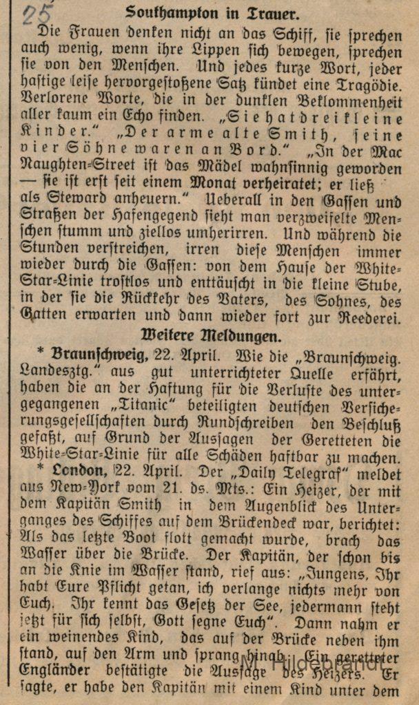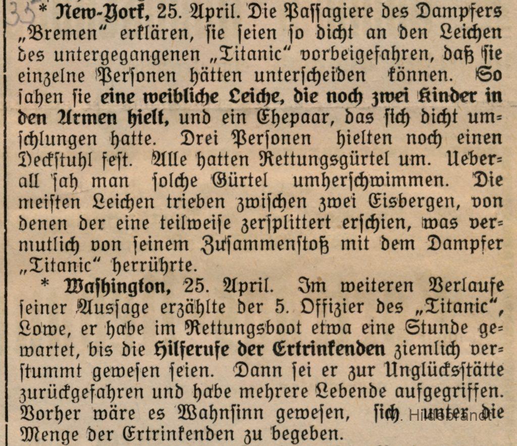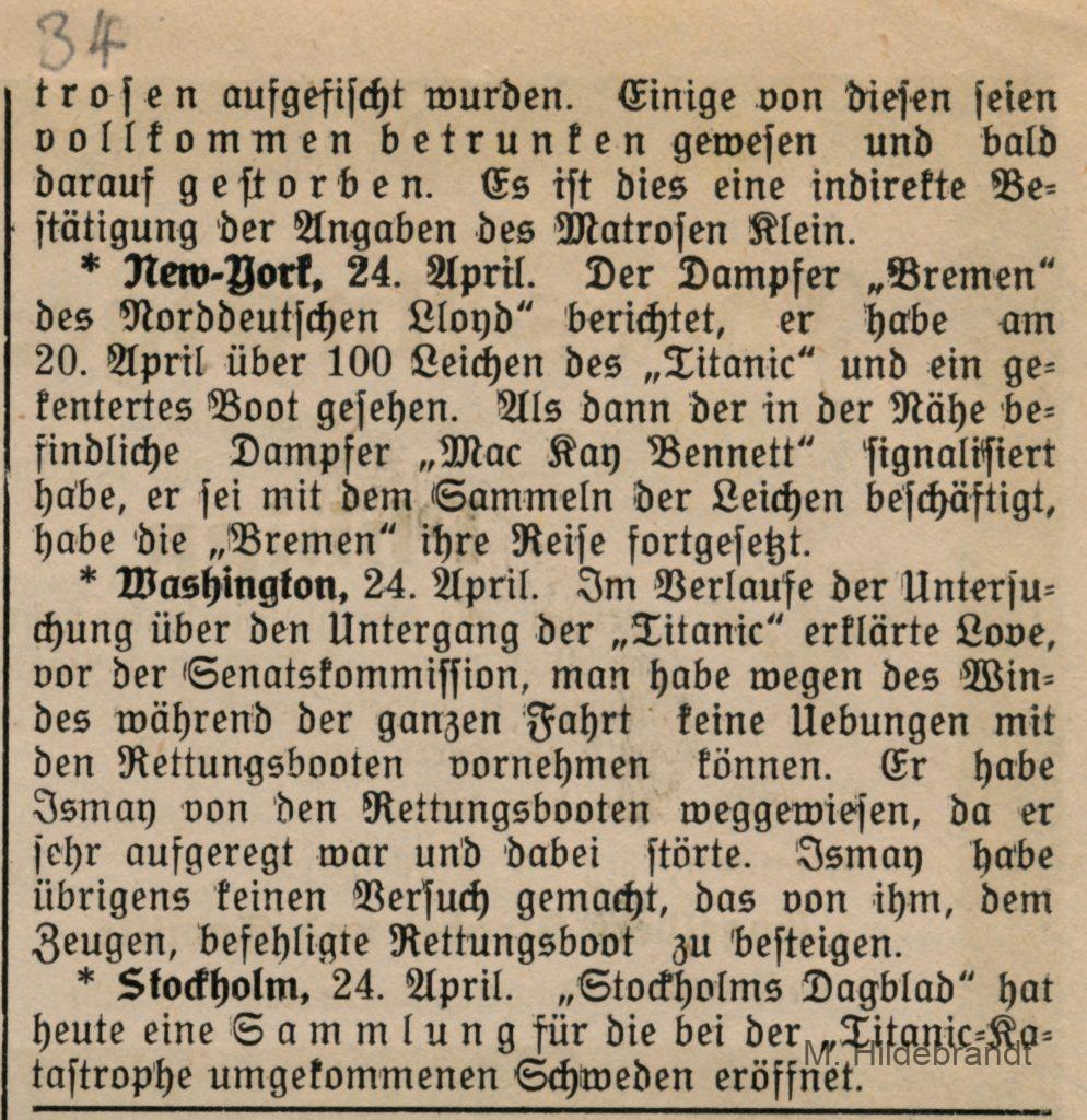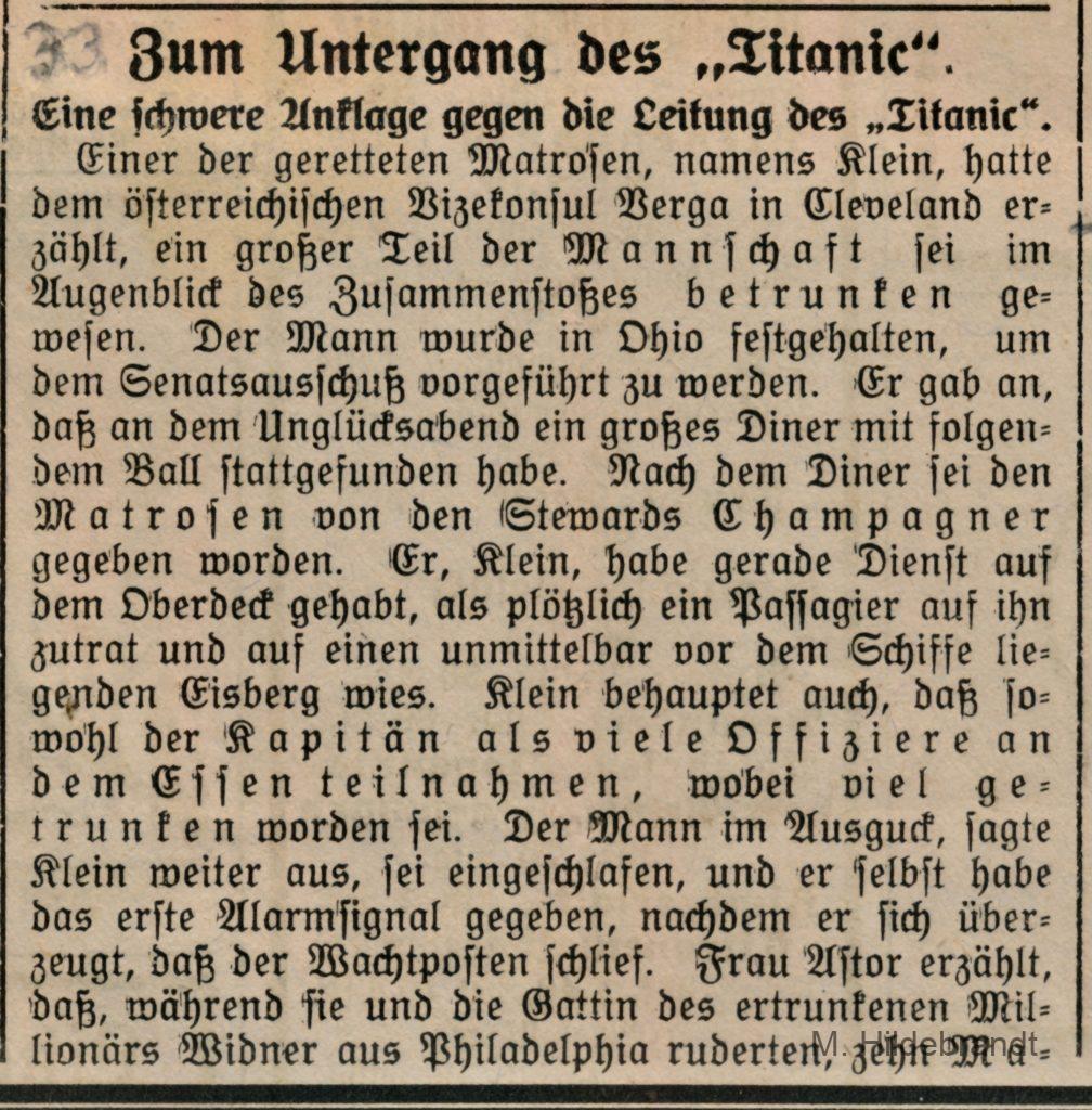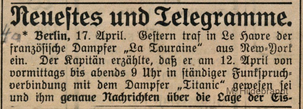 3 Antworten auf “Titanic-Untergang: am 15. April 1912 rammte das Dampf-Schiff einen riesigen Eisberg. Seltene Original-Berichte aus dem Villinger Volksblatt vom 16. bis 25.04.1912.”
