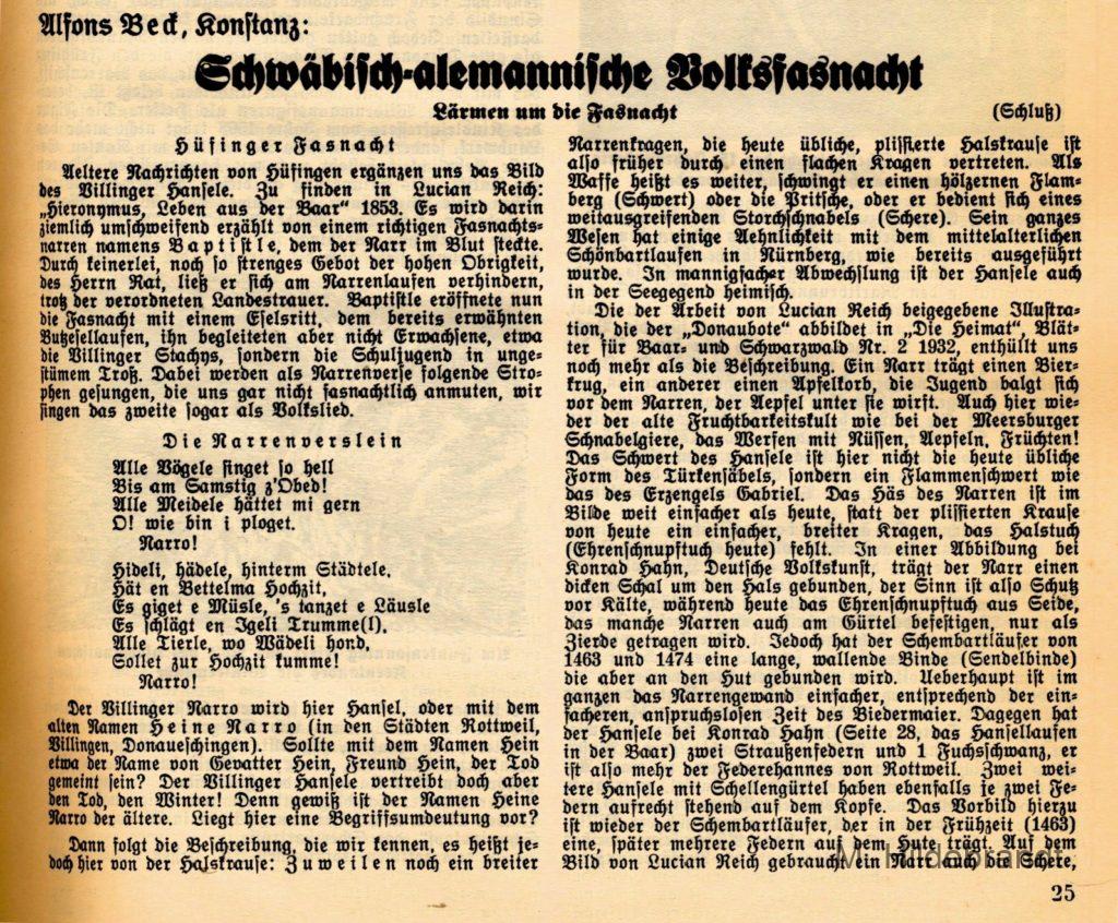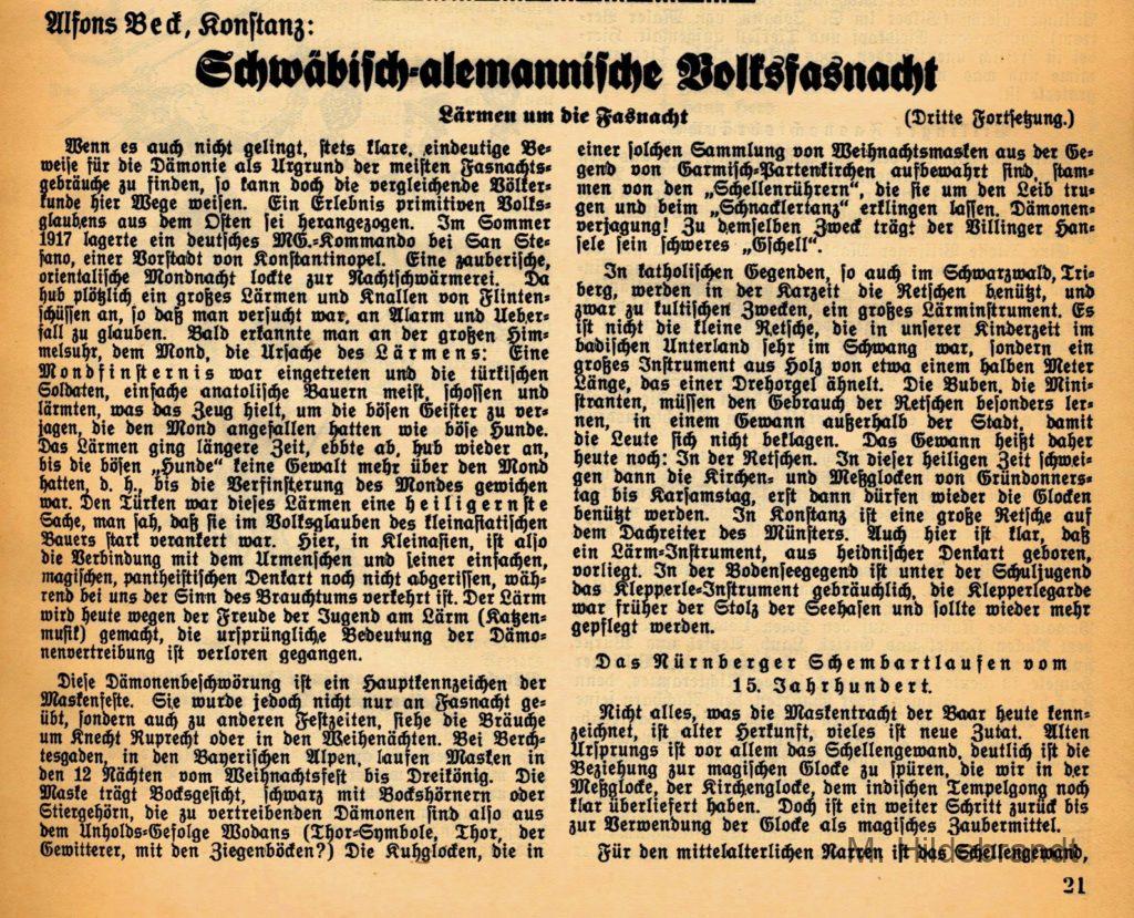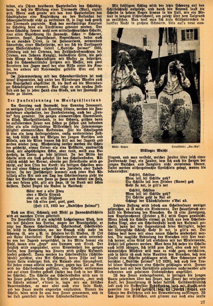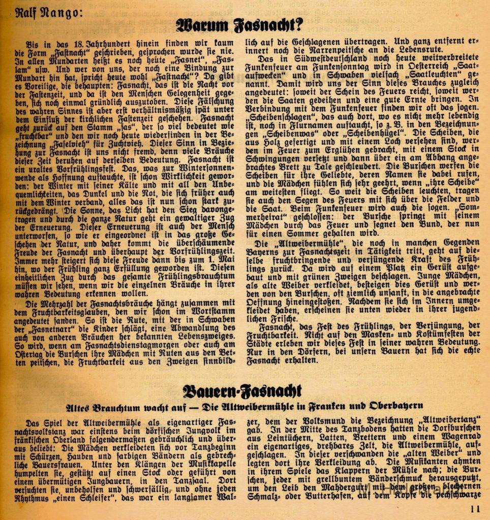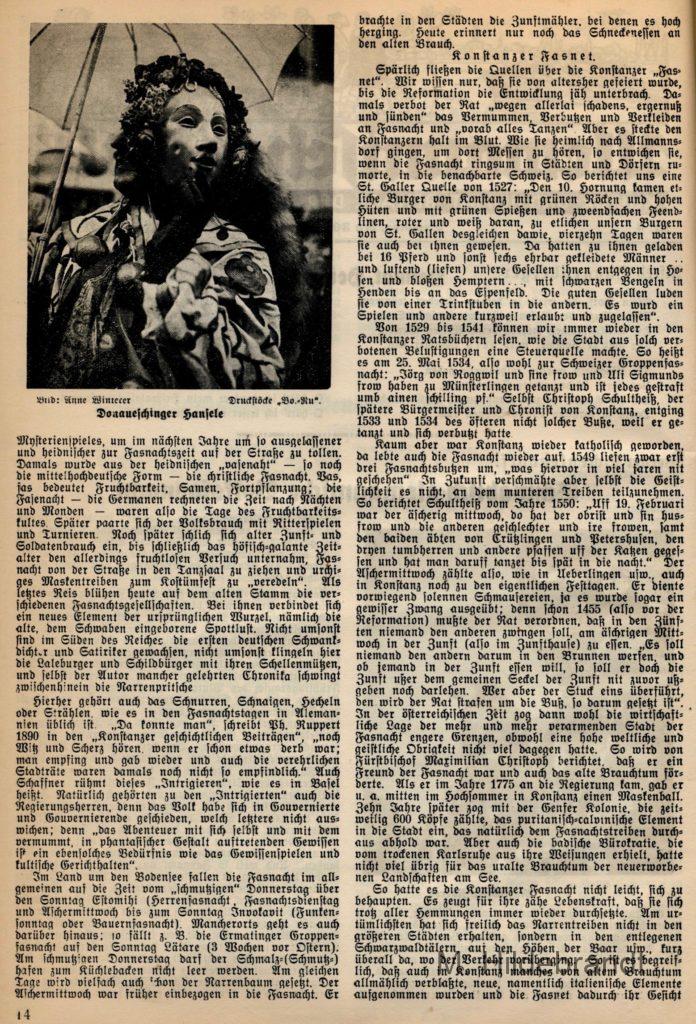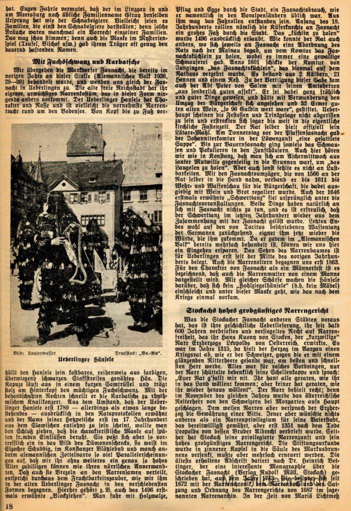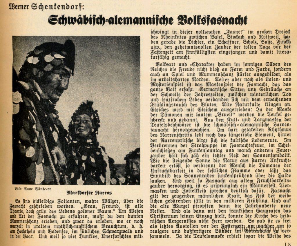 Fasnacht: Alemanisches Volk, Kultur- und Heimatbeilage 1937