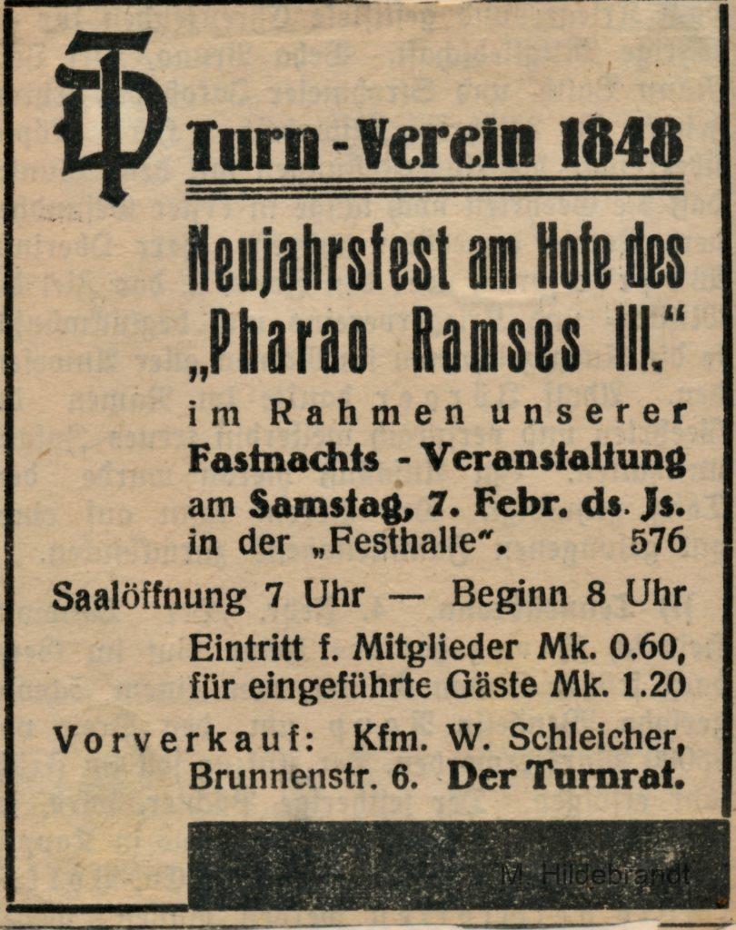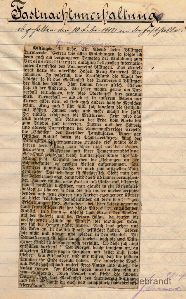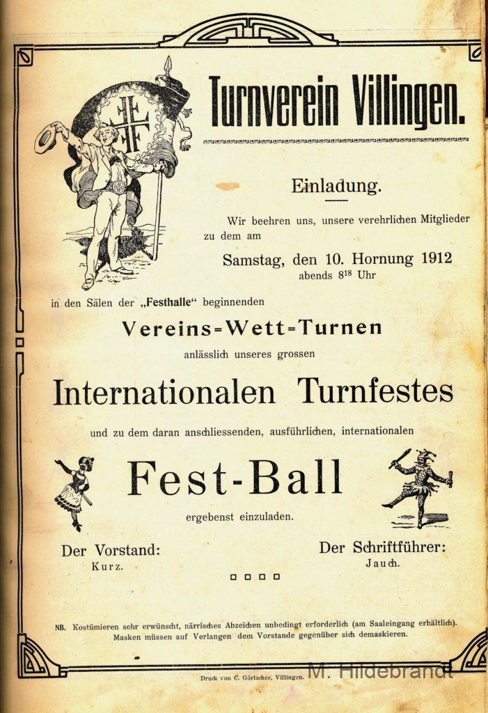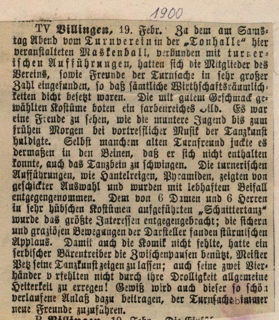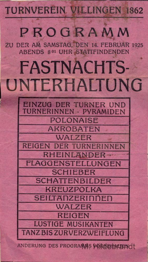 Villingen: TV 1848 Villingen Maskenbälle, Fastnachts-Unterhaltung 1887 bis 1940. (Daten stammen aus dem Archiv des Turnverein).