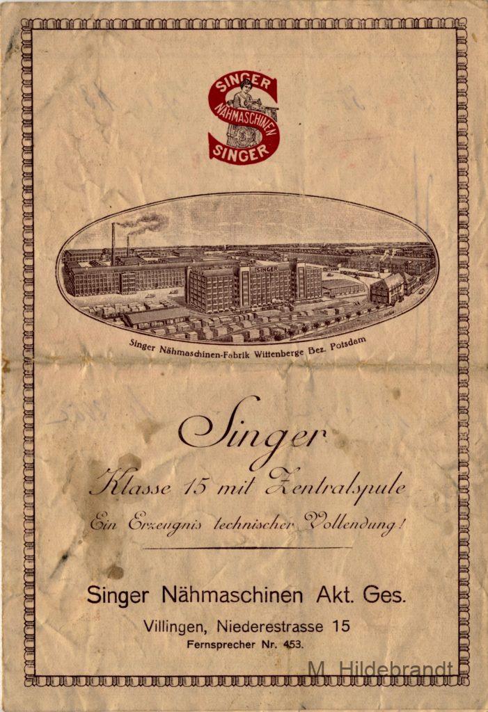 Villingen: Singer Nähmaschinen-Fabrik aus Wittenberge mit Katlog und Verkaufs-Laden in der Villinger Niederen Straße Nr. 15