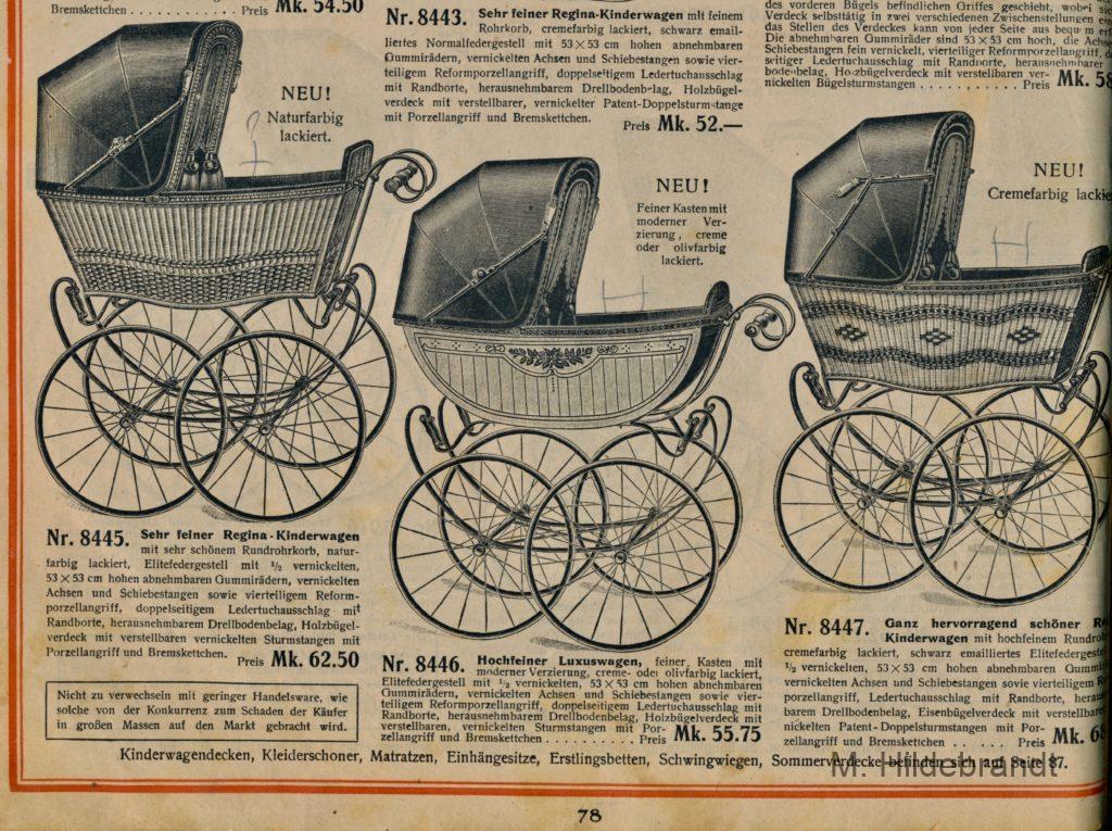 ich habe letztes Jahr einen Recht alten Kinderwagen für meinen Sohn erstanden, weiß allerdings nicht wie alt dieser tatsächlich ist. Bevor ich ihn restauriere, würde ich aber gerne wissen an welchen Vorbildern ich mich orientieren kann. Schreibe mich doch gerne per E-Mail an, dann kann ich dir ein paar Bilder schicken. Grüße, Stefan