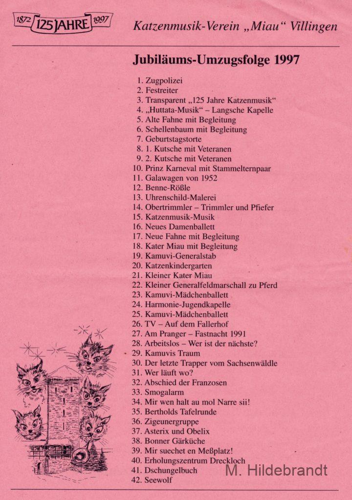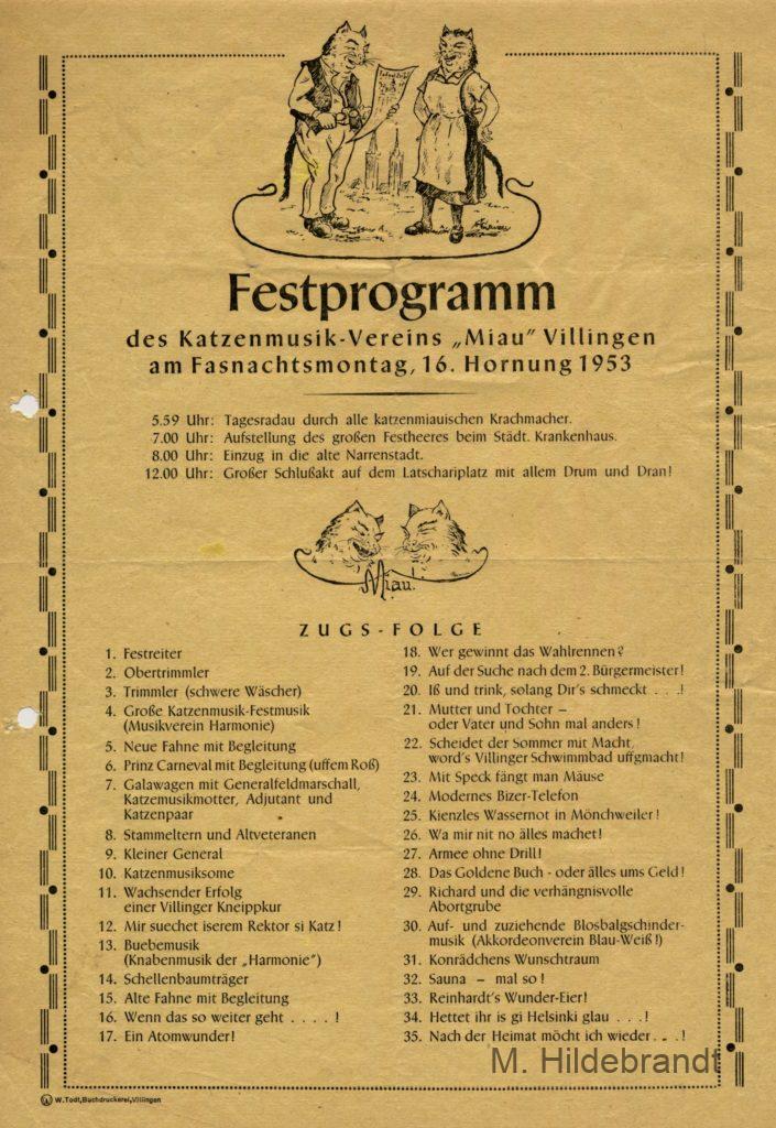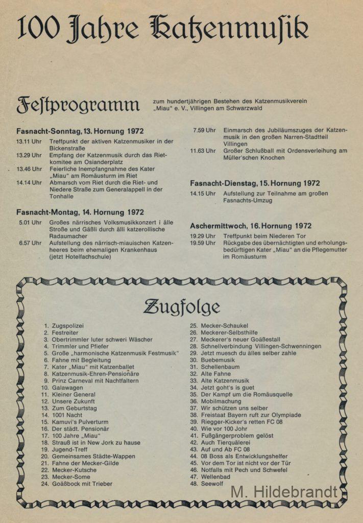 Villingen Katzenmusik 1872: Fasnachtverein mit alten Festprogrammen ab 1922. Zusätzlich Mitglieds-Orden und Vereins-Lied.