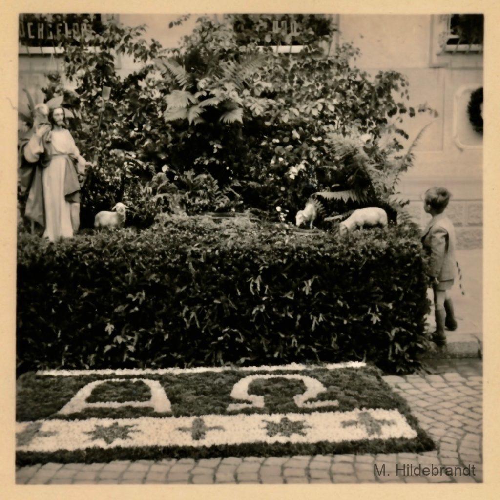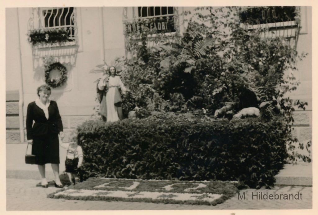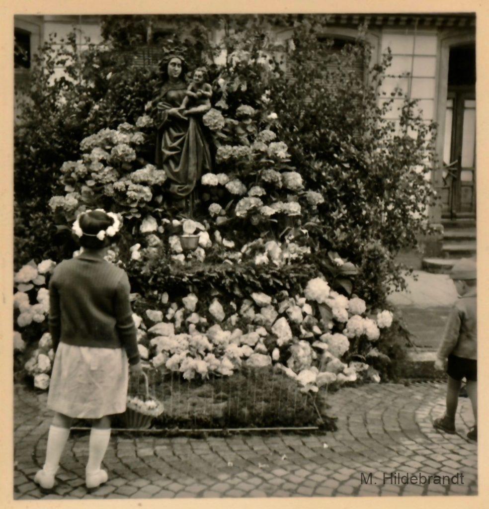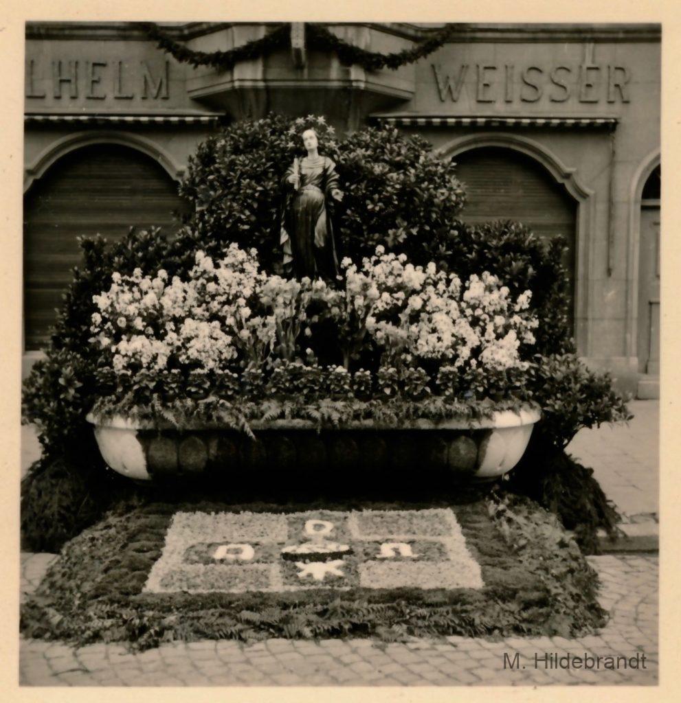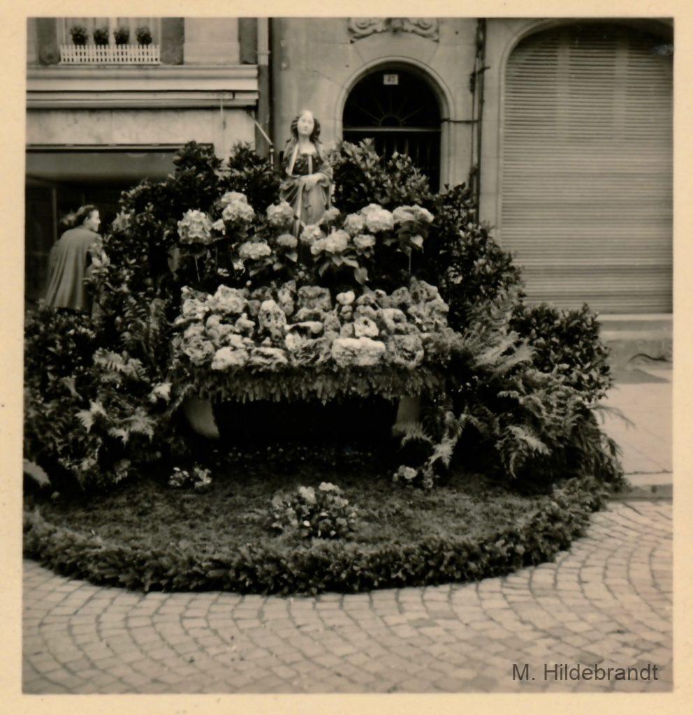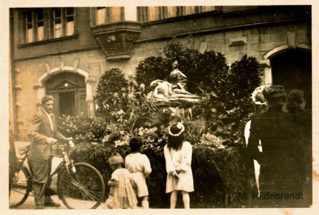 Villingen: Privat-Fotos vom Fronleichnam-Fest in der Innenstadt. Auch die Brandschutz-Heilige Agatha vom Niederen Tor (Abriss 1847) wurde aus dem Bauschutt gerettet, restauriert und ausgestellt. Durch Verwandtschaft gelangte die Figur in die Kalkhofen-Straße. Dort von einem Sammler entdeckt und Übergabe ins Franziskaner-Museum eingeleitet.