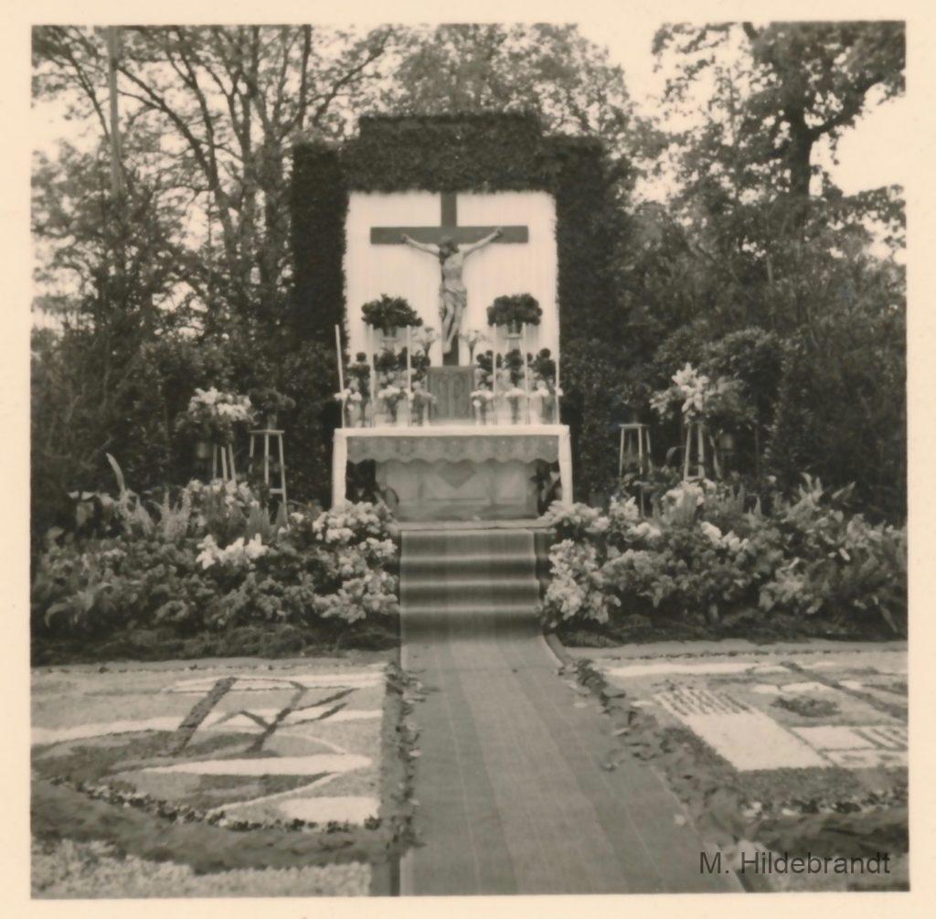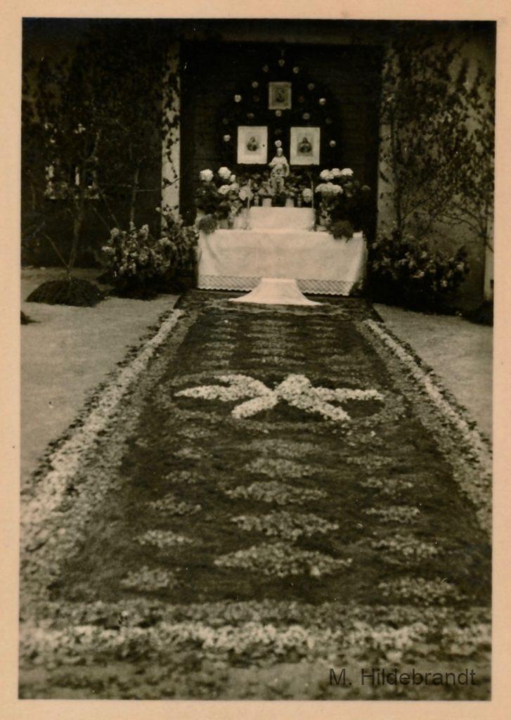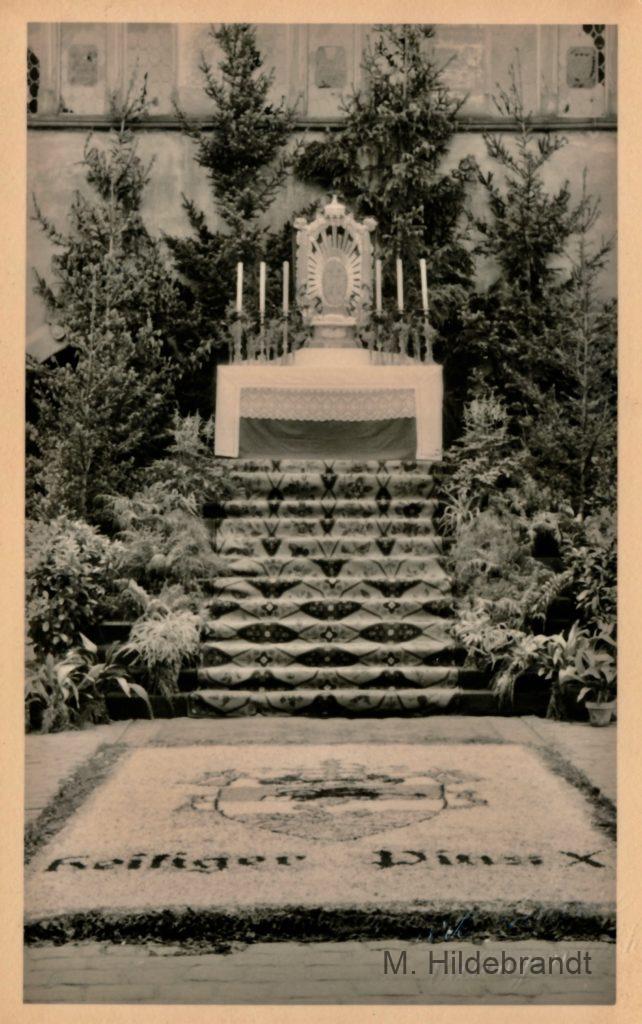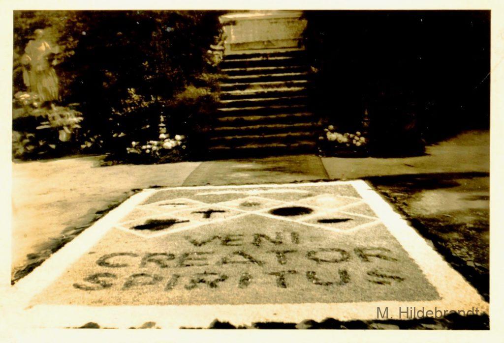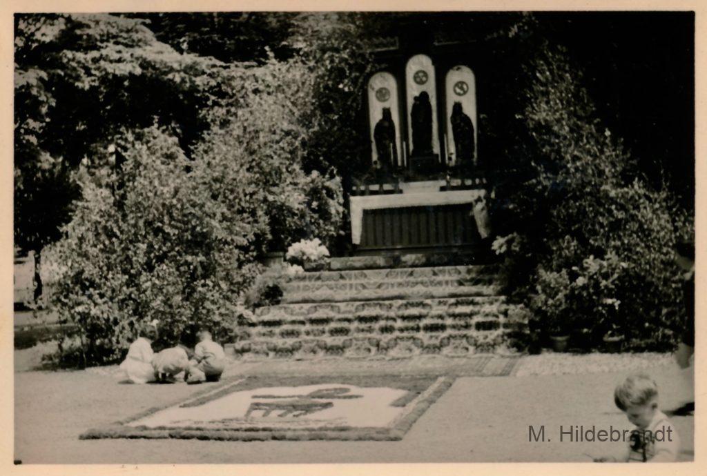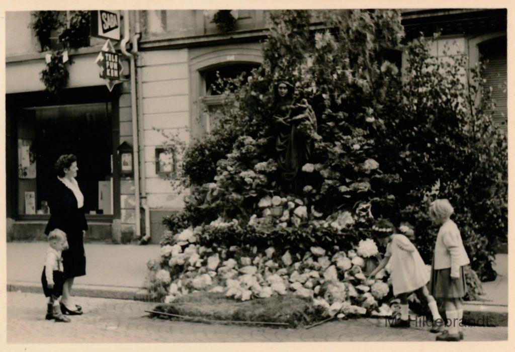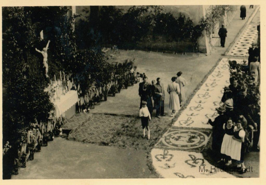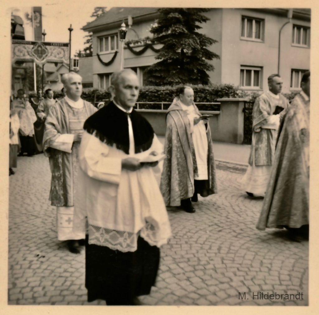 Villingen: Privat-Fotos vom Fronleichnam-Fest in der Innenstadt. Auch die Brandschutz-Heilige Agatha vom Niederen Tor (Abriss 1847) wurde aus dem Bauschutt gerettet, restauriert und ausgestellt. Durch Verwandtschaft gelangte die Figur in die Kalkhofen-Straße. Dort von einem Sammler entdeckt und Übergabe ins Franziskaner-Museum eingeleitet.