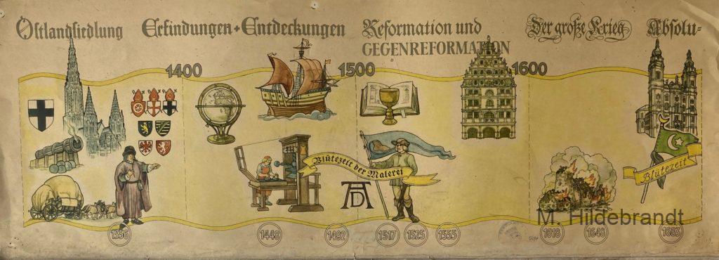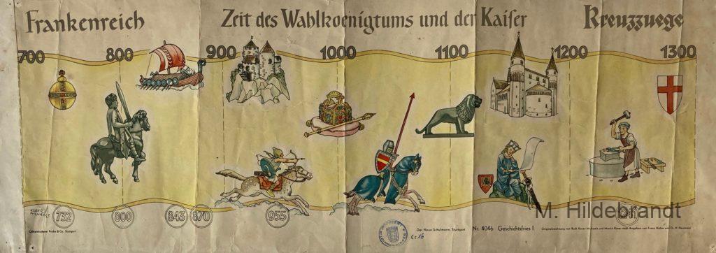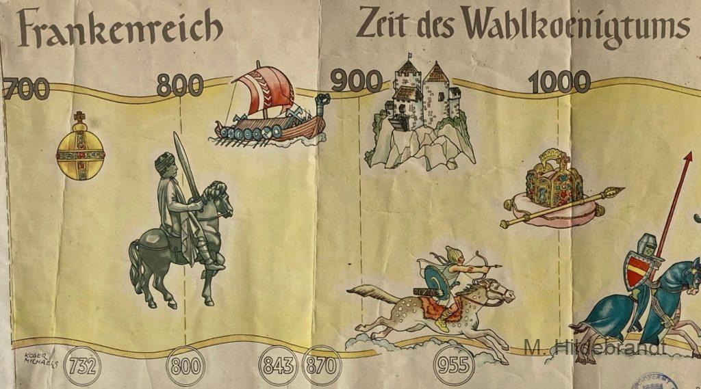 Geschichte: Von den Römern 009 bis 1945 auf Lern-Plakaten A1, von einer Schule aussortiert.