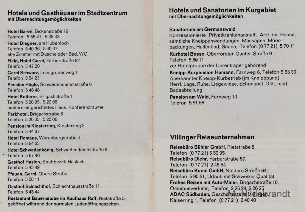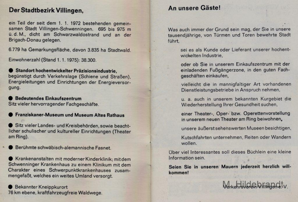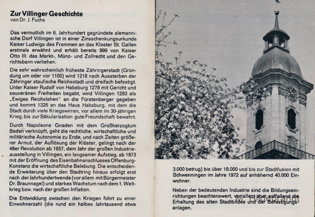Villingen 1974: Gästeführer mit Geschichte, Industrie, Fachgeschäfte, Gasthäuser, Fasnacht, Museen und Kurgebiet.