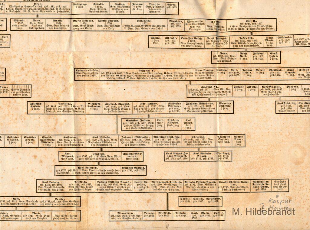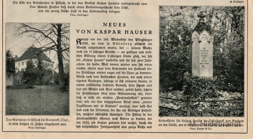 Kaspar Hauser ist am 30 April 1812 geboren und wurde in Ansbach am 17. Dezember 1833 ermordet. Er war geistig behindert und in einem Kellerverließ versteckt. Erkenntnisse von 1924. Auf der Stammtafel des Hauses Baden ist er anscheinend nach der Geburt gestorben. Es gab viele Rätsel um sein Leben.