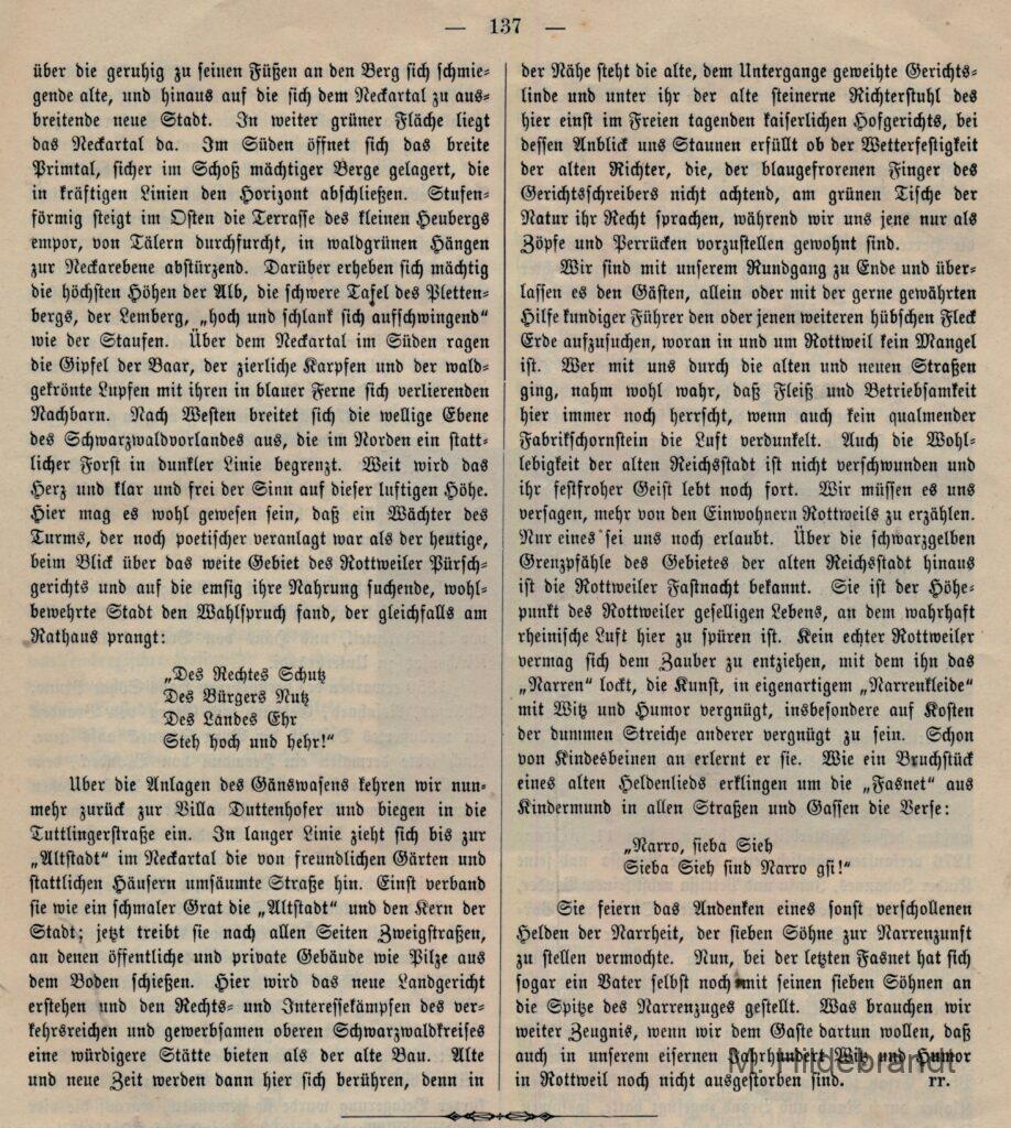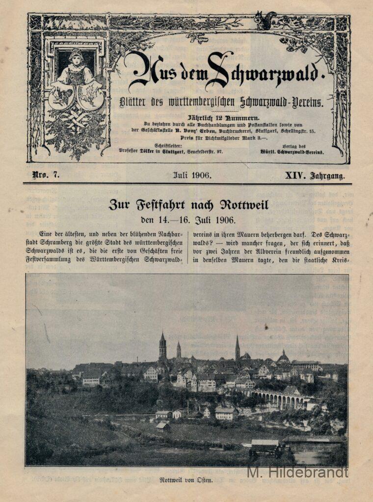 Rottweil ist die älteste Stadt von Württemberg. Im Juli 1906 ist beim Hauptvereinsfest einiges geboten. Drei Seiten Werbung von Firmen aus dem Süd-Schwarzwald bis Stuttgart und Fasnacht sind auch in der Zeitung.