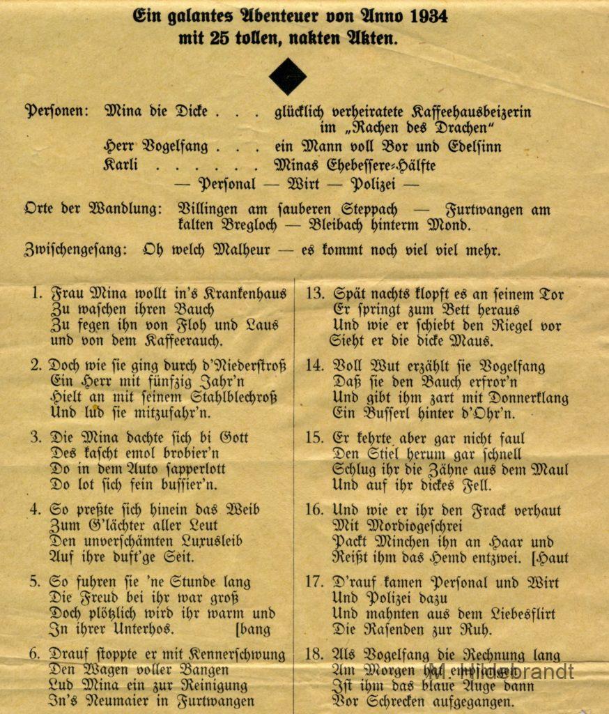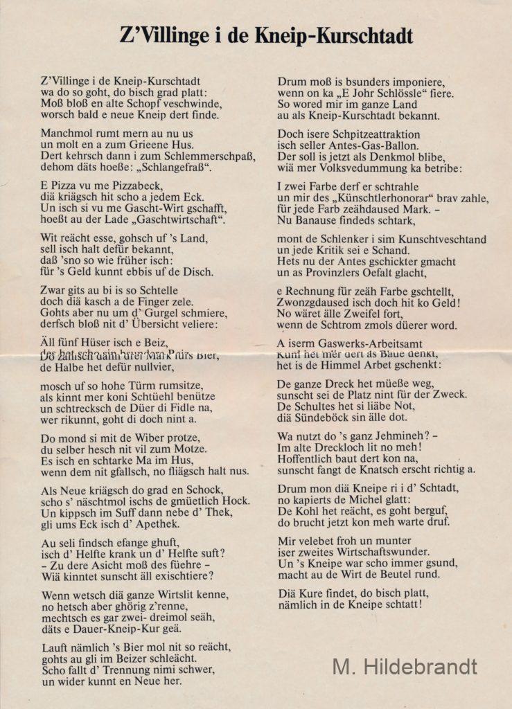 Villingen Sprüche und Moritaten. Wer kennt hier diesen Text ???