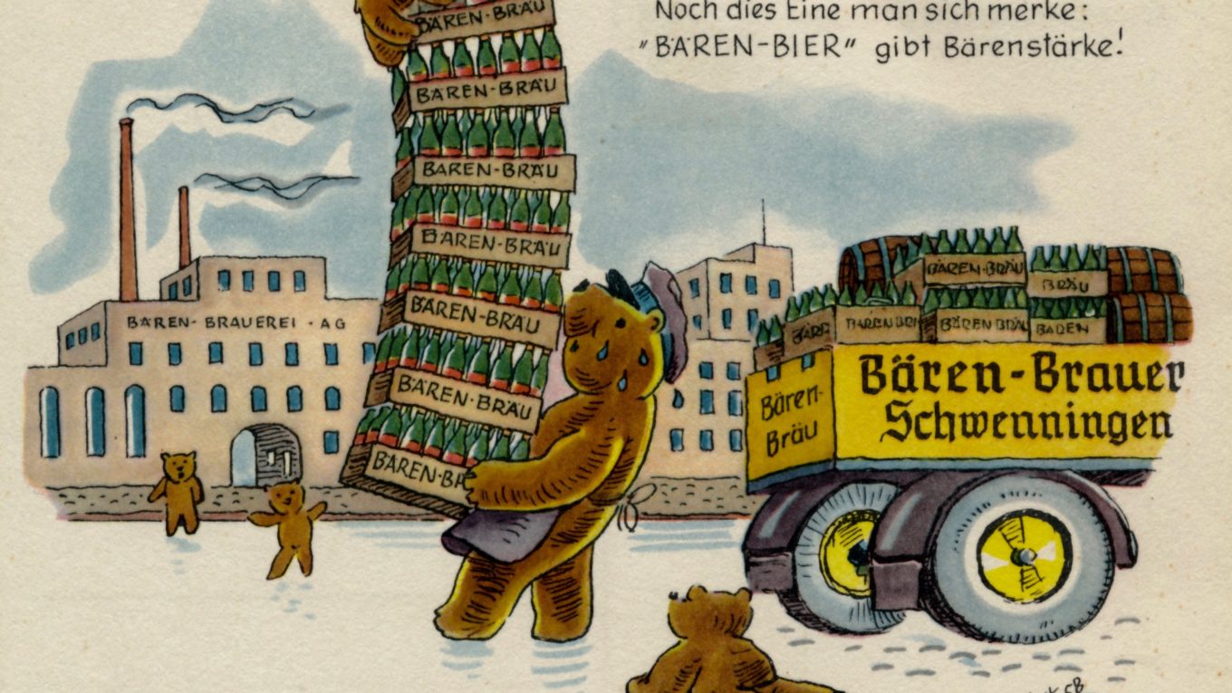 Schwenningen: Bären-Brauerei Werbung. Seit 1797 wurde in der Neckar-Quelle-Stadt erfolgreich Bier gebraut.
