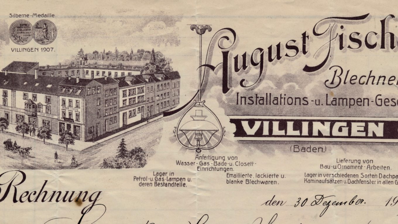 Villingen: August Fischer, Blechnerei, Obere Straße 28 (rechts vor dem Oberen Tor)