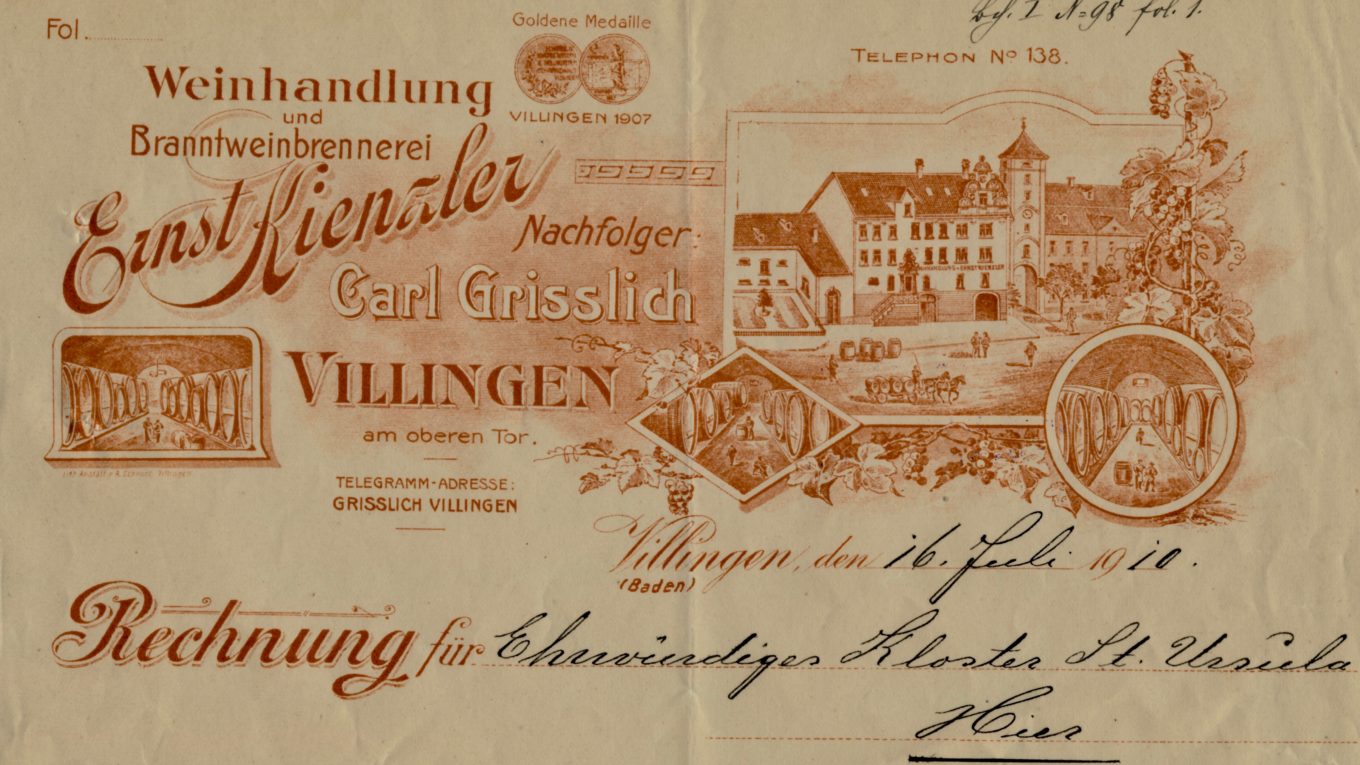 Villingen: Kienzler Ernst, Weinhandlung in der Oberen Straße Nr. 37 am Oberen Tor