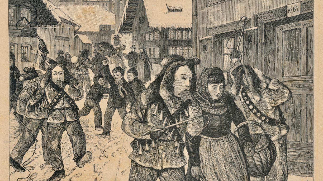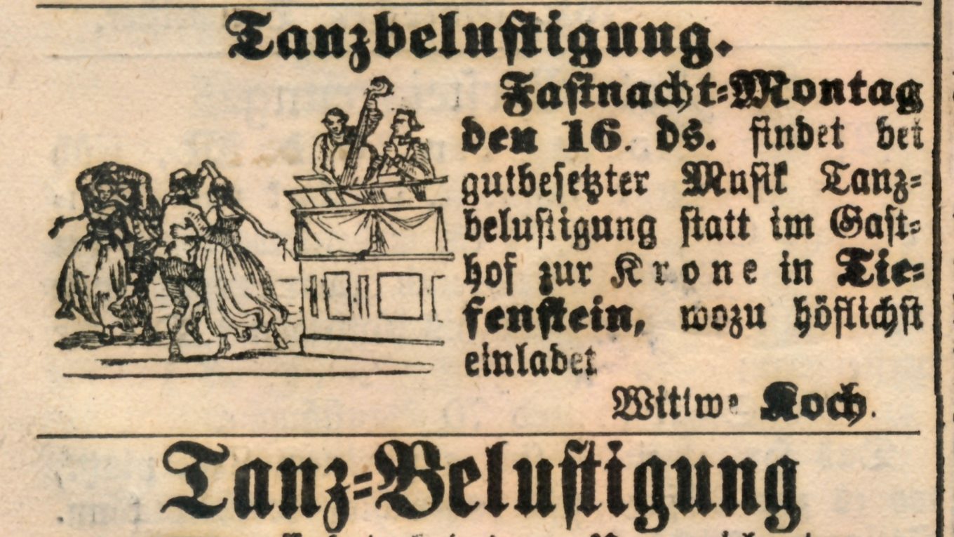 Fastnachtsvergnügen 1890 in Furtwangen im Schwarzwald. Zusätzlich 1 Stich aus der Zeit.