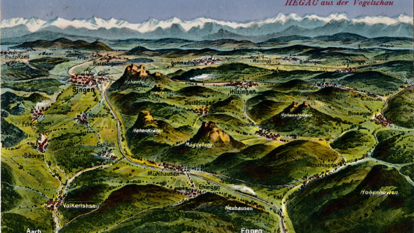 Hegau im Seekreis Bodensee mit seinen 7 Vulkan-Bergen und Burgruinen.